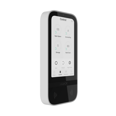 KeyPad TouchScreen Jeweller combines security and automation device management. The keypad’s intuitive interface mirrors that of Ajax apps and supports multiple languages, which makes the keypad easy to use.