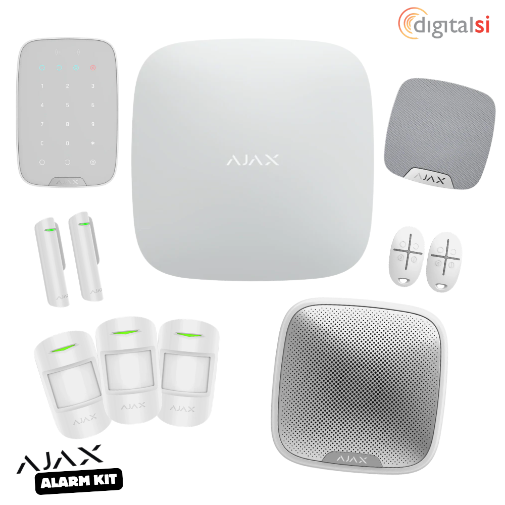 AJAX Wireless Alarm Kit with 3 x Motion Sensors, 2 x Door Contacts, 2 x Remotes, 1 x Keypad, Internal & External siren