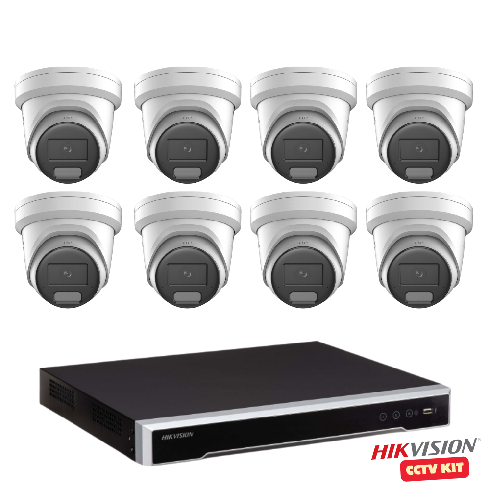 Hikvision 16 Channel M Series 4TB NVR with 8 x 4K 8 Megapixel Non-LiveGuard Turret Cameras 2.8mm Lens