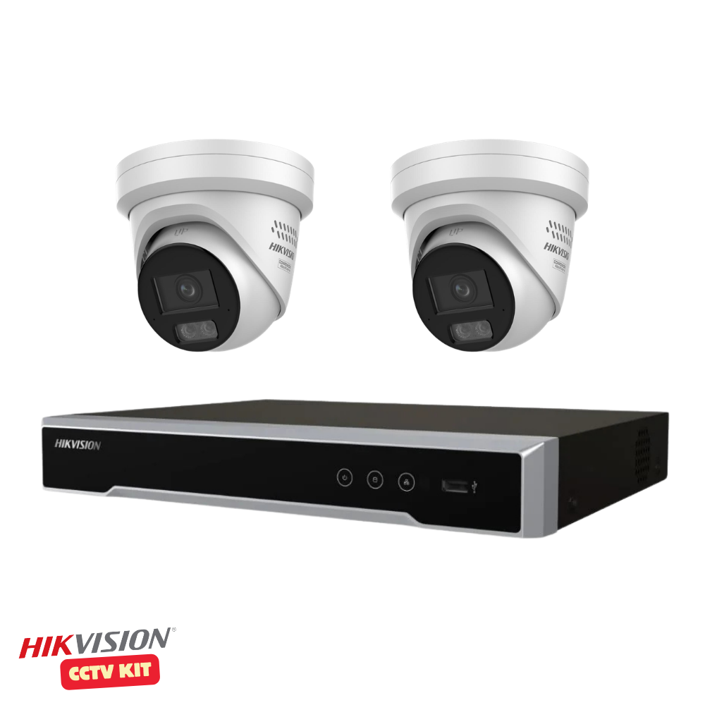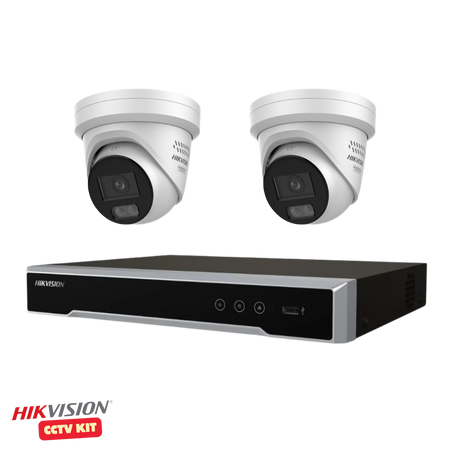 Hikvision 4 Channel M Series 4TB NVR with 2 x 4K 8 Megapixel ColorVu 3.0 LiveGuard Turret Cameras 2.8mm Lens