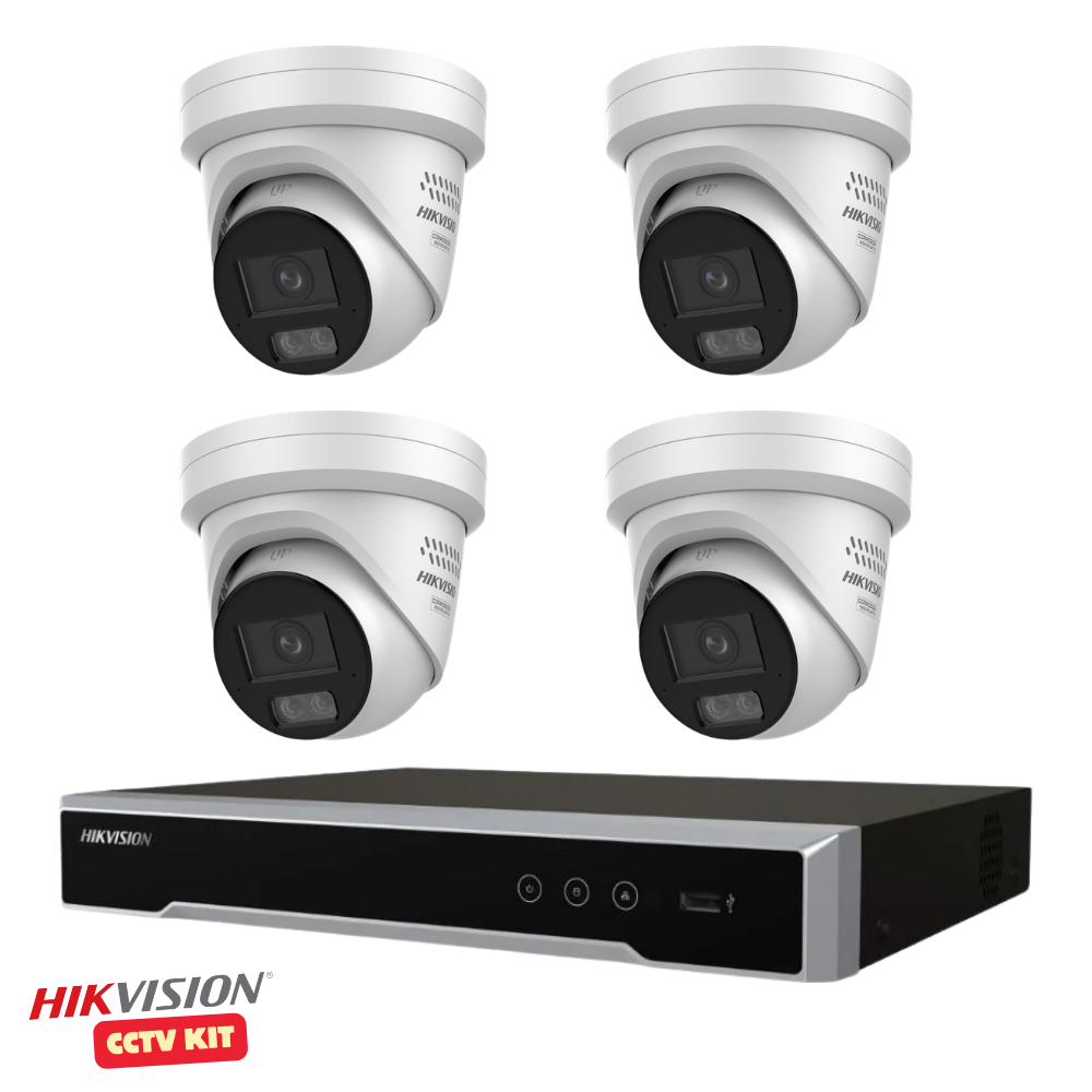 Hikvision 4 Channel M Series 4TB NVR with 4 x 4K 8 Megapixel ColorVu 3.0 LiveGuard Turret Cameras 2.8mm Lens
