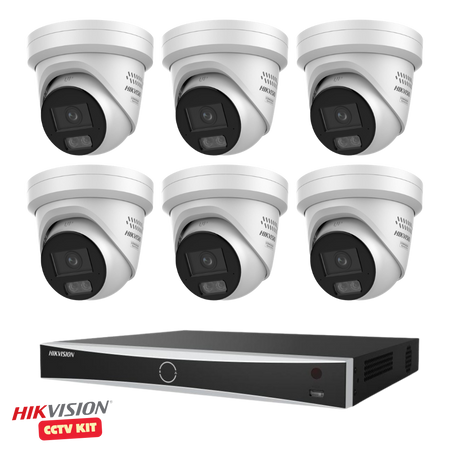 Hikvision 8 Channel AcuSeek 4TB NVR with 6 x 4K 8 Megapixel ColorVu 3.0 LiveGuard Turret Cameras 2.8mm Lens