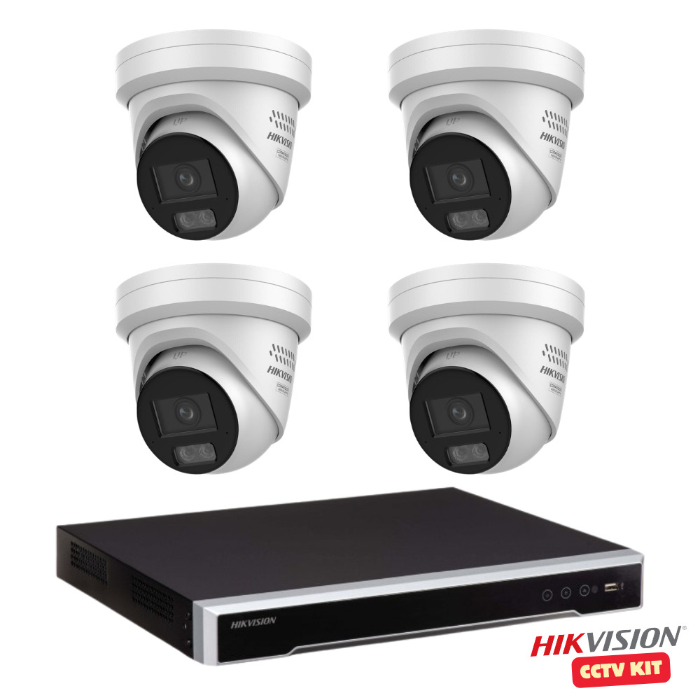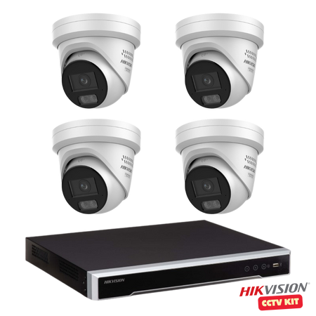 Hikvision 8 Channel M Series 4TB NVR with 4 x 4K 8 Megapixel ColorVu 3.0 LiveGuard Turret Cameras 2.8mm Lens
