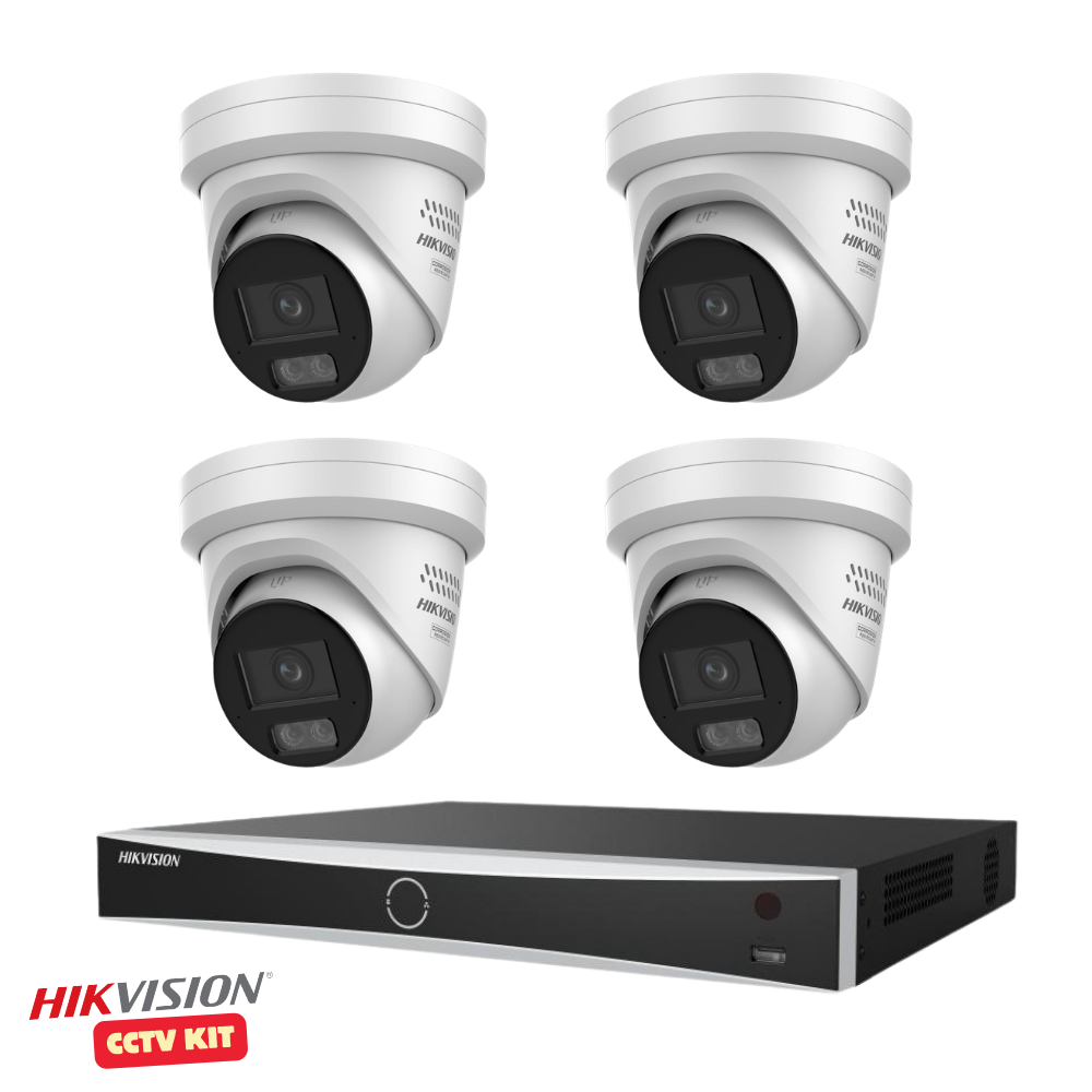 Hikvision 8 Channel AcuSeek 4TB NVR with 4 x 4K 8 Megapixel ColorVu 3.0 LiveGuard Turret Cameras 2.8mm Lens